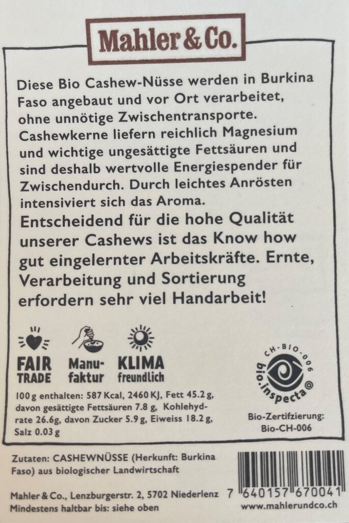 Mahler Bio Cashew 180g